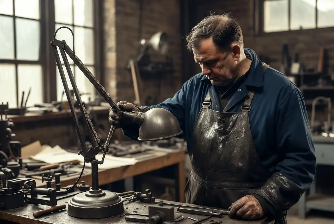 Tutto comincia nei primi anni Venti del Novecento, in un’officina britannica. George Carwardine era un ingegnere specializzato in sospensioni automobilistiche e cercava di risolvere un problema che occupava designer e progettisti da decenni: costruire una lampada da lavoro che non richiedesse pesi, contrappesi o meccanismi farraginosi. La soluzione fu elegante quanto inattesa: un sistema di molle in tensione che permetteva di orientare il braccio della lampada con un solo gesto, mantenendolo fermo nella posizione scelta. Herbert Terry and Sons, produttore di molle nel Worcestershire, inizia la produzione nel 1933 sotto il nome di Anglepoise. Un buon prodotto, pensato per le fabbriche, che per anni non attira attenzione fuori dall’industria.